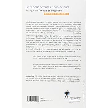 Une référence incontournable, sur le lien entre théâtre et société." Le Théâtre de l'opprimé est théâtre dans le sens le plus archaïque du mot. Tous les êtres humains sont des acteurs (ils agissent !) et des spectateurs (ils observent !). Nous sommes tous des spect-acteurs. Ce livre est un système d'exercices (monologues corporels), de jeux (dialogues corporels) et de techniques de théâtre-image, qui peuvent être utilisés par des acteurs (ceux qui font de l'interprétation leur profession ou leur métier) aussi bien que par des non-acteurs (c'est-à-dire tout le monde !). " Augusto BoalLe Brésilien Augusto Boal est l'une des grandes figures internationales du théâtre contemporain : fondateur du Théâtre de l'opprimé, sa pratique a essaimé depuis plus de trois décennies dans le monde entier. Ses techniques sont largement utilisées par ceux qui ont choisi de faire du théâtre une arme politique, mais aussi par les professionnels du social (psychothérapeutes, infirmiers psychiatriques, éducateurs ou enseignants). La nouvelle édition de ce livre, désormais devenu une référence incontournable, est entièrement actualisée et propose de nouveaux jeux, exercices et techniques.