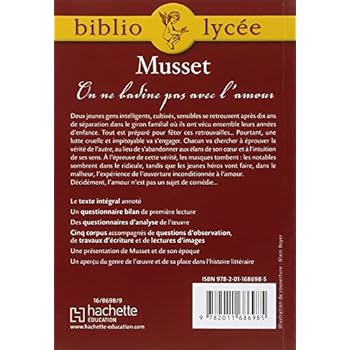 Deux jeunes gens intelligents, cultivés, sensibles se retrouvent après dix ans de séparation dans le giron familial où ils ont vécu ensemble leurs années d'enfance. Tout est préparé pour fêter ces retrouvailles… Pourtant, une lutte cruelle et impitoyable va s'engager. Chacun va chercher à éprouver la vérité de l'autre, au lieu de s'abandonner aux élans de son cœur et à l'intuition de ses sens. À l'épreuve de cette vérité, les masques tombent : les notables sombrent dans le ridicule, tandis que les jeunes héros vont faire, dans le malheur, l'expérience de l'ouverture inconditionnée à l'amour. Décidément, l'amour n'est pas un sujet de comédie…Bibliolycée propose :• le texte intégral annoté,• un questionnaire bilan de première lecture,• des questionnaires d'analyse de l'œuvre,• cinq corpus accompagnés de questions d'observation et de travaux d'écriture,• une présentation de Musset et de son époque,• un aperçu du genre de l'œuvre et de sa place dans l'histoire littéraire.